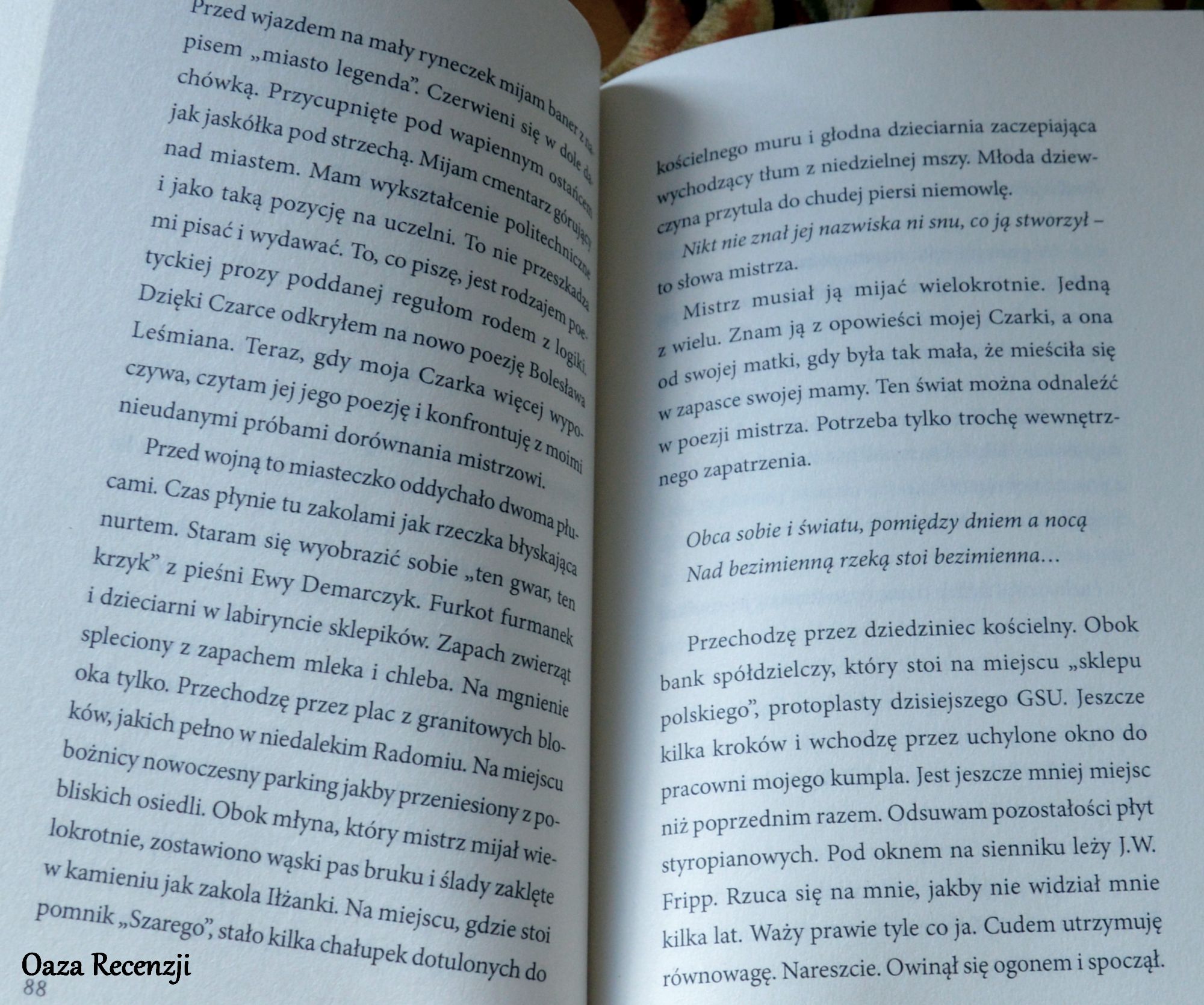 Książka pana Rafała Ziętka to zapiski z życia ludzi, którzy szukają własnego szczęścia. Jest w nich tęsknota za tym, co minęło, miłość pokazana w różnych odmianach i piękno otaczającej nas natury, zwłaszcza w tytułowym opowiadaniu „Rękopis z ogrodu”, które podobało mi się najbardziej ze względu na ujmujące opisy przyrody ujęte w nietypowy, malarski sposób. To lektura dla tych osób, które lubią niestandardowy sposób prowadzenia opowieści, opierający się na domysłach, abstrakcyjności i metaforycznych odniesieniach. Nie jest to proza przekazana wprost, lekkim i bezpośrednim stylem, dlatego czas przy czytaniu tej książki płynie wolno, czasami z oporem a czasami nużąco. Nie raz miałam ochotę ją odłożyć ale staram się dokończyć każdą lekturę, więc i tutaj było podobnie.